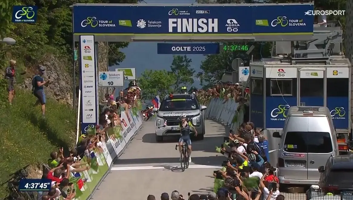 Continua una striscia di risultati positivi per il Team Solution Tech-Vini Fantini: Kyrylo Tsarenko vince dalla fuga la quarta tappa del Tour of Slovenia 2025, precedendo sul traguardo un ottimo Samuele Zoccarato (Polti-VisitMalta) e Anders Halland Johannessen (Uno X-Mobility). Frazione decisiva nel disegnare la nuova (e forse definitiva) classifica generale: il terzo posto di oggi regala al norvegese Johannessen la maglia di leader, con 16" su Felix Grossschartner (UAE Team Emirates-XRG) e 19" su Tao Geoghegan Hart (Lidl-Trek).