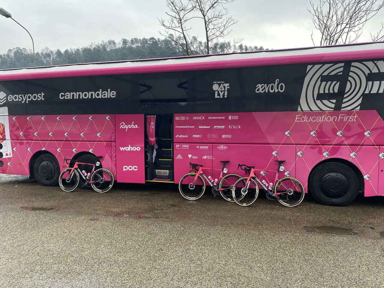 La squadra belga è stata poi seguita dalla Lidl-Trek, che ha deciso di abbandonare completamente la corsa. Anche la INEOS Grenadiers, la Decathlon AG2R La Mondiale, la EF Education-Easypost e l'intera Uno-X Mobility sono tornate ai rispettivi bus, insieme alla RedBull-BORA-hansgrohe, che già era stata danneggiata dall'incidente di ieri con il ritiro di Maxim Van Gils.