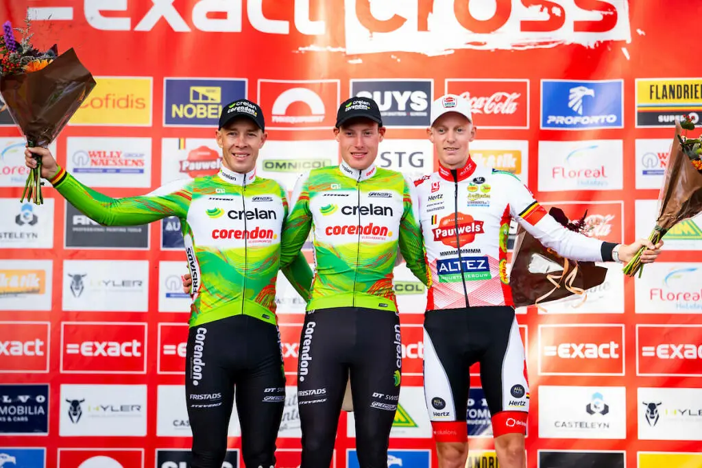 Doppio successo per la Crelan-Corendon nel primo appuntamento della stagione del grande ciclocross: Inge van der Heijden e Joran Wyseure si impongono sul traguardo del Berencross di Meulebeke, che torna a inaugurare il circuito dell'Exact Cross dopo tre anni di assenza.