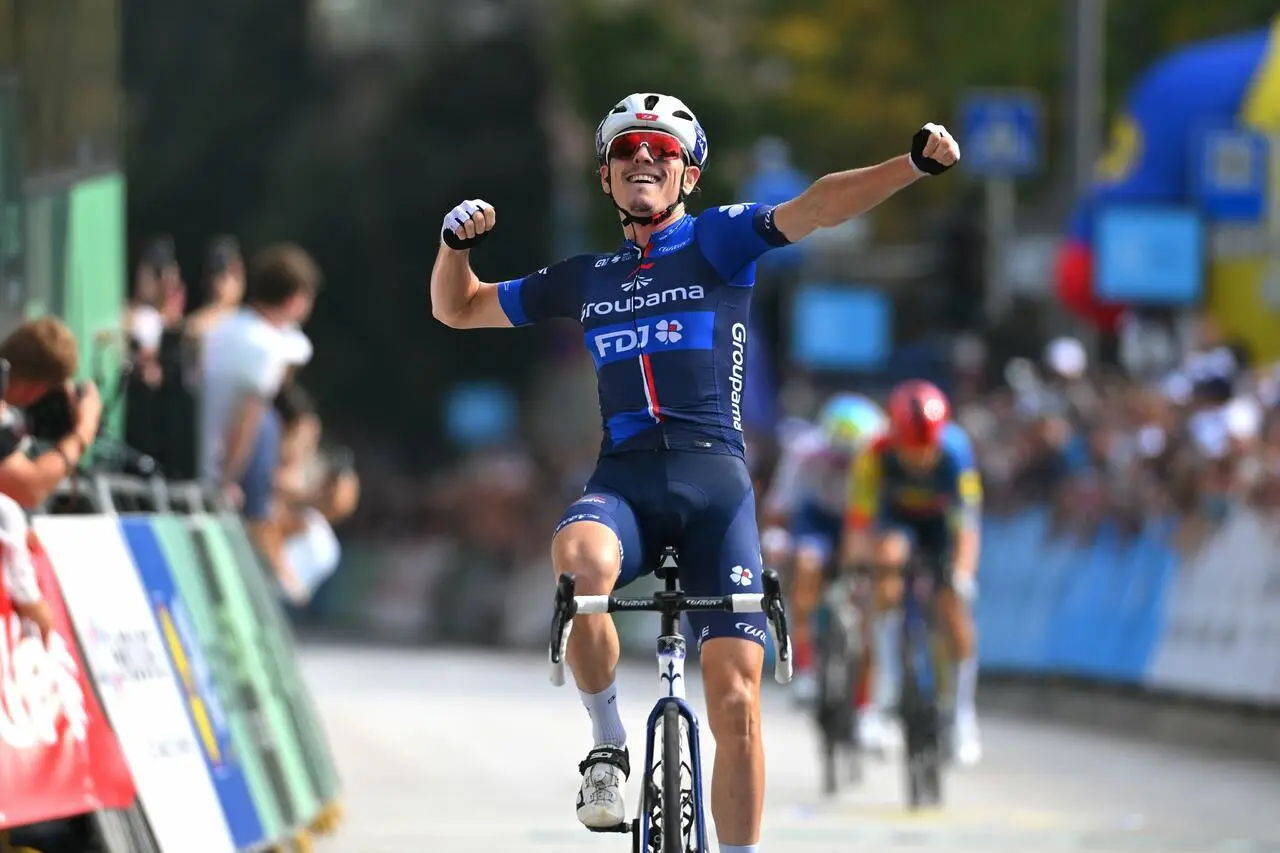 Tiberi alimenta l'azione e riceve qualche cambio da Gaudu: ai meno 5 km dal traguardo il loro vantaggio sul plotone dei favoriti è di oltre 30". I quattro imboccano l'ultimo passagio sul Pabeierbierg con 40" di vantaggio sul gruppo, tirato dalla EF. Ai meno 1.3 km attacco violento di David Gaudu, imitato in gruppo da Van der Poel: Gaudu fa il vuoto, mentre a Van der Poel è necessaria un'altra rasoiata per staccarsi i contendenti di ruota, con il solo Mads Pedersen (Lidl-Trek) unico nella sua scia. Gaudu ha margine sufficiente per alzare le braccia al cielo e festeggiare una vittoria che ne certifica l'ottimo stato di forma post-Vuelta. Alle sue spalle Quinn Simmons regola il gruppetto con Jordan Jegat terzo e Tiberi quarto, ma il frusinate si può ben consolare, perché alle sue spalle non compare ancora Van der Poel: il campione del mondo taglia il traguardo con 29" di ritardo, consegnando di fatto la maglia di leader della generale a Tiberi.