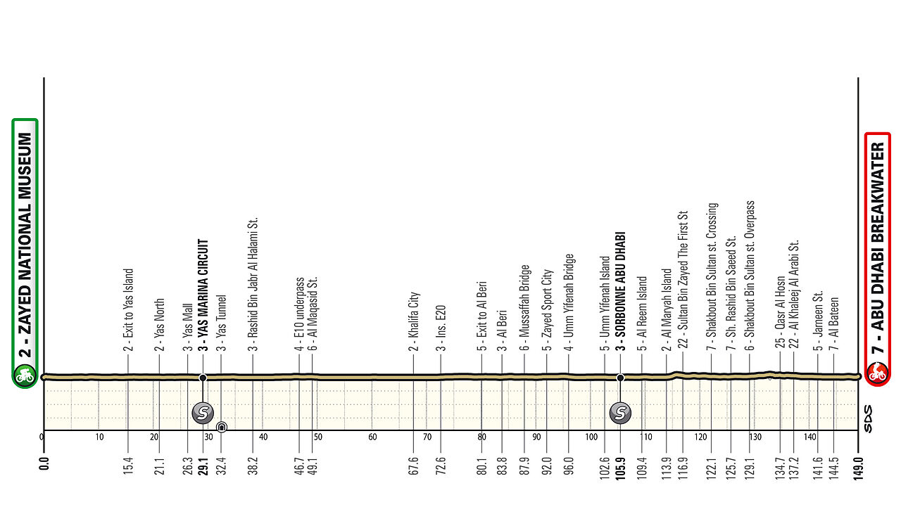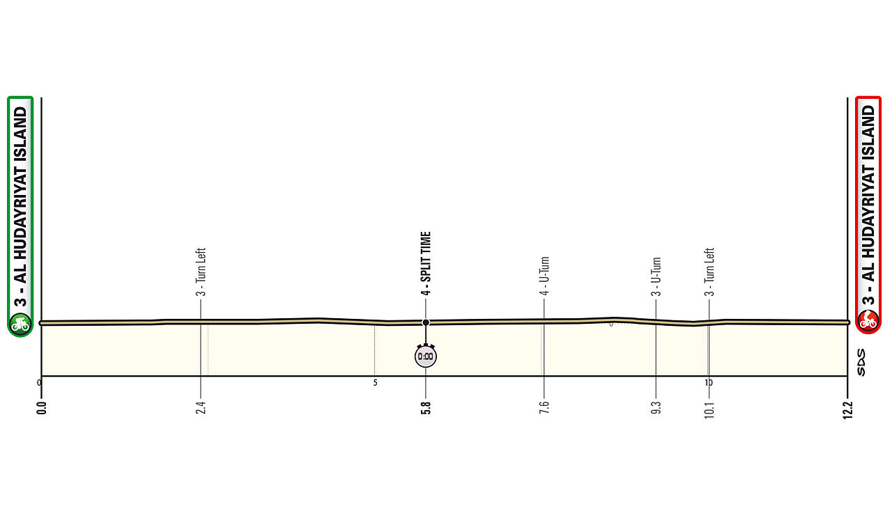Martedì 17 febbraio - 2a tappa: Al Hudayriyat Island - Al Hudayriyat Island (12.2 km - Cronometro individuale)